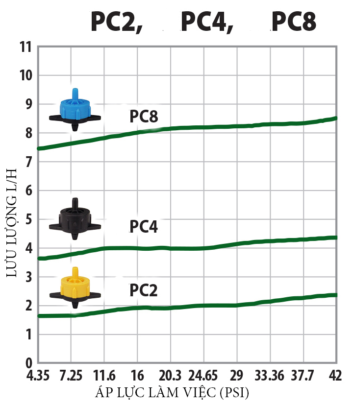 Ứng dụng: Tưới các loại cây ăn quả trong các địa hình đồi núi không đông đều giúp ổn định lưu lượng tưới tất cả các đầu tưới nhỏ giọt.